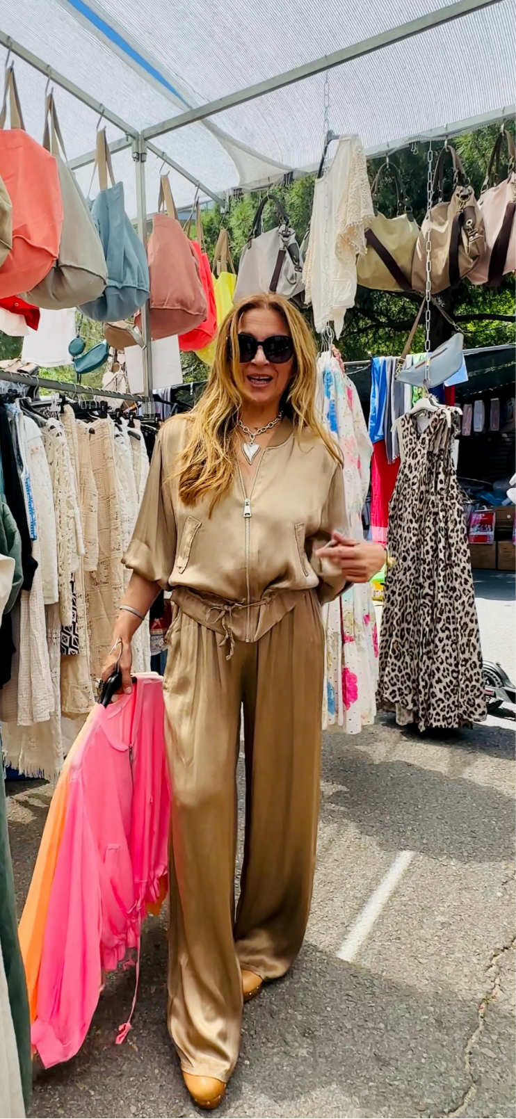 Satin bomber jacket with faux pockets and adjustable drawstring waist