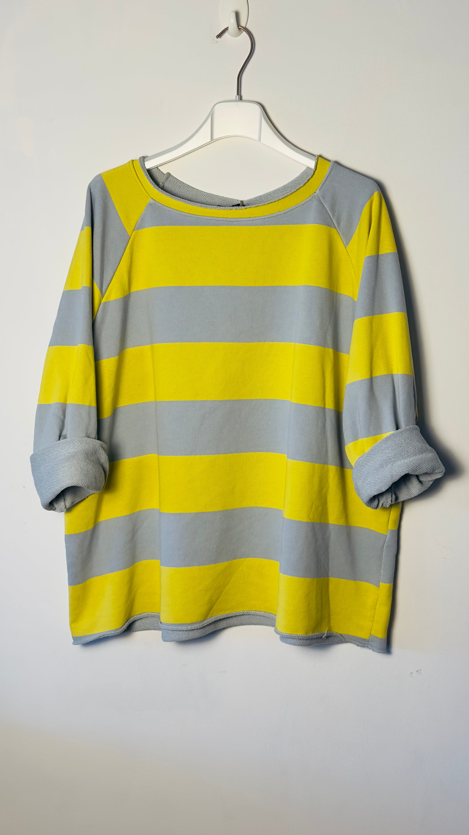 Sudadera de rayas ancha con cuello redondo, manga ranglán acabados con pespuntes.