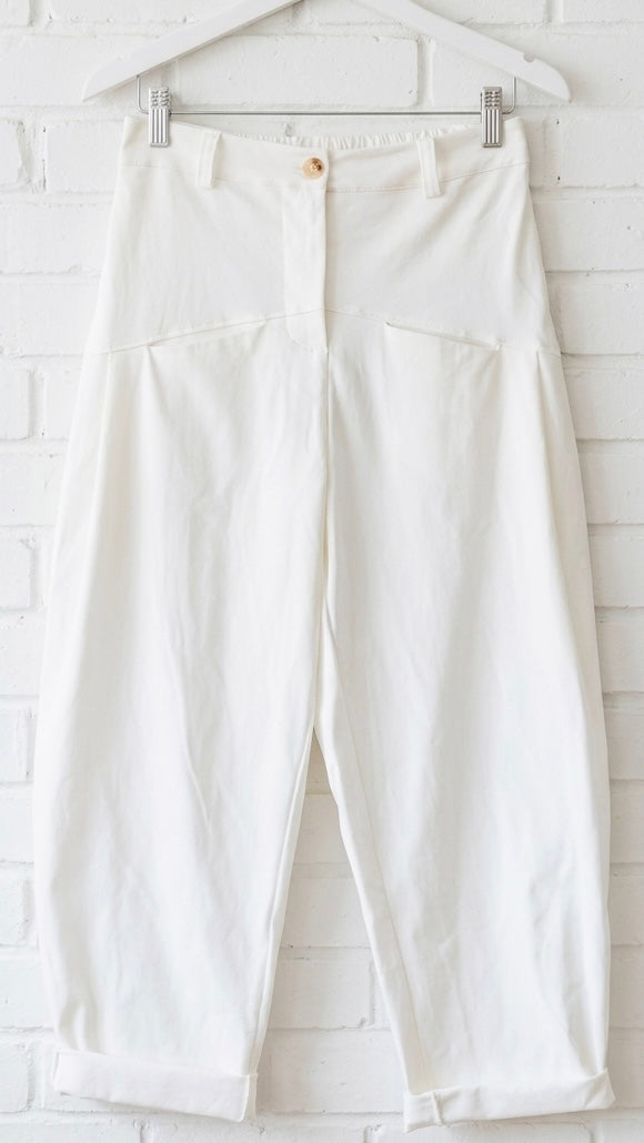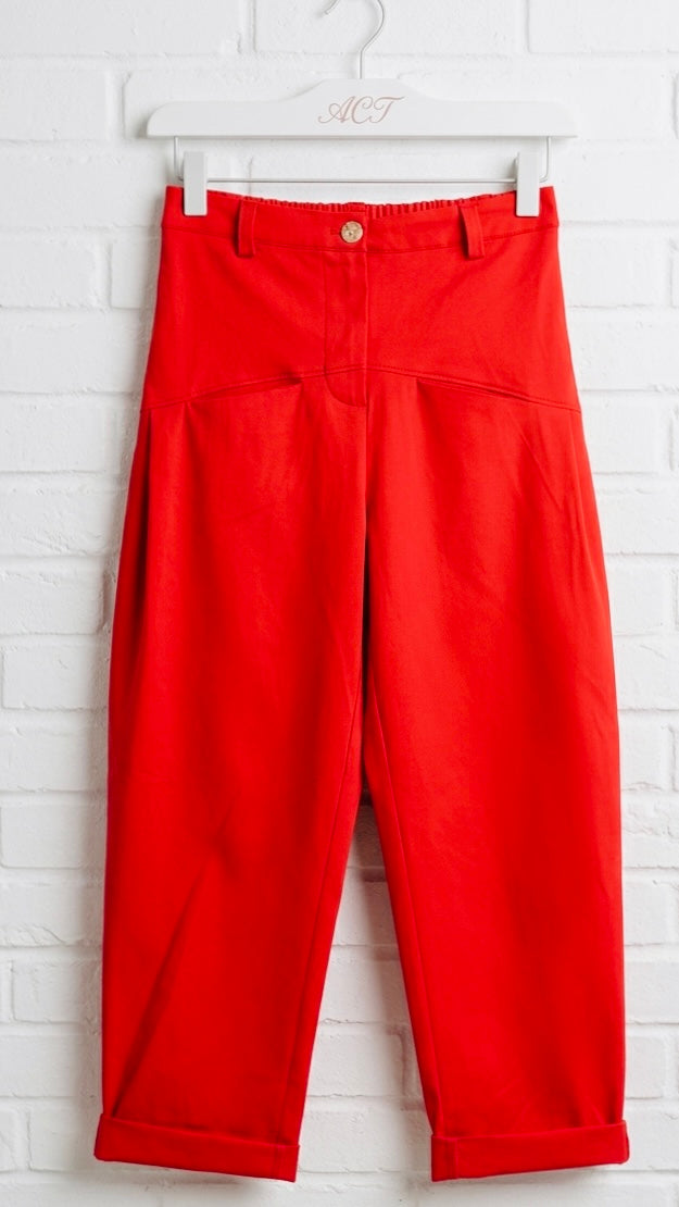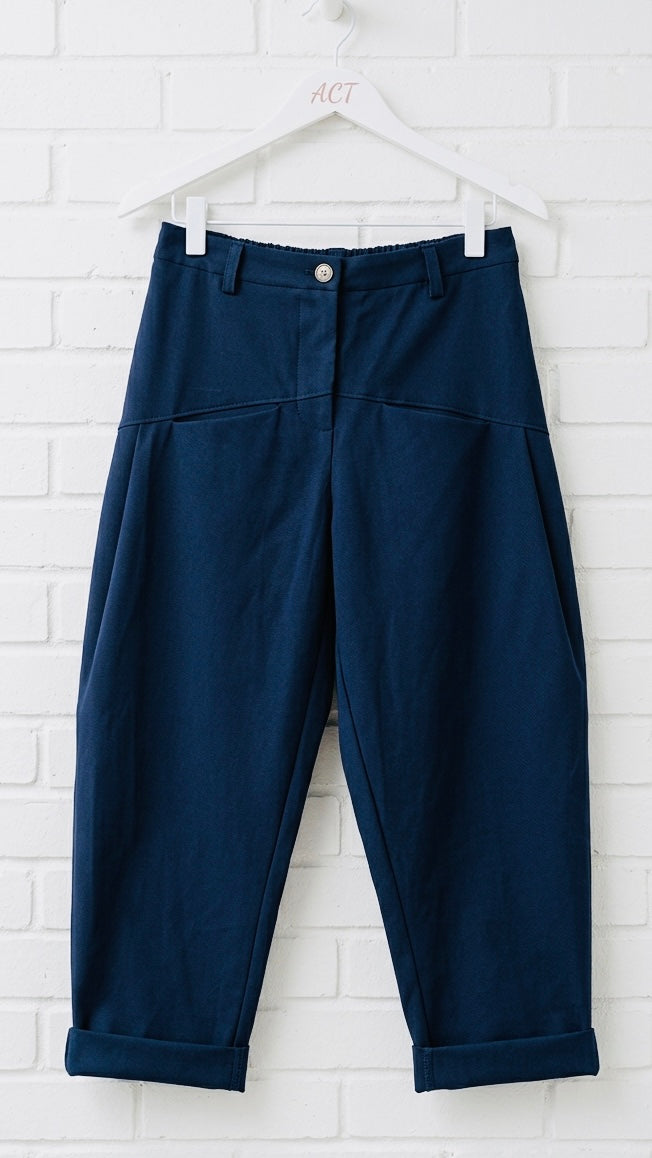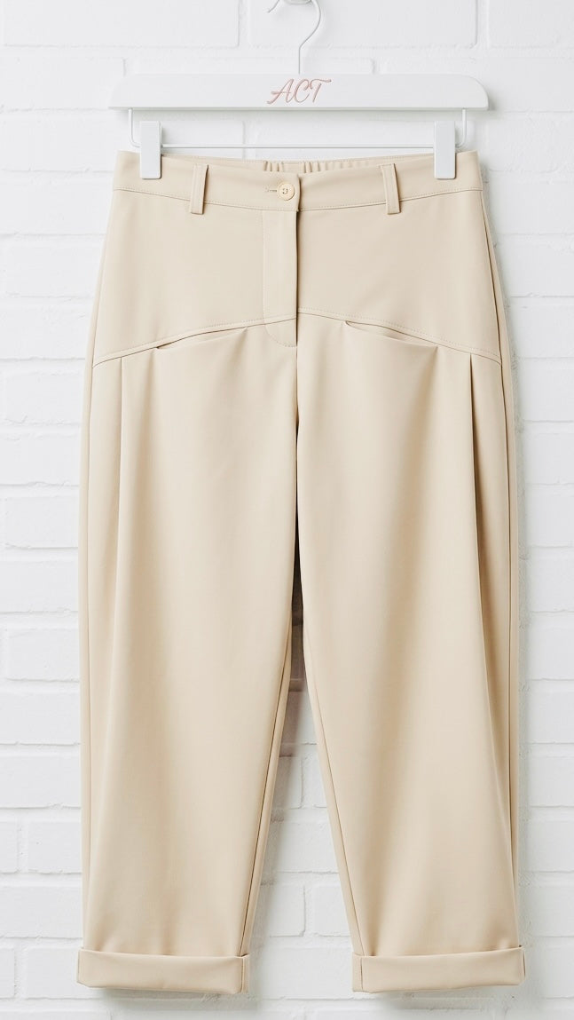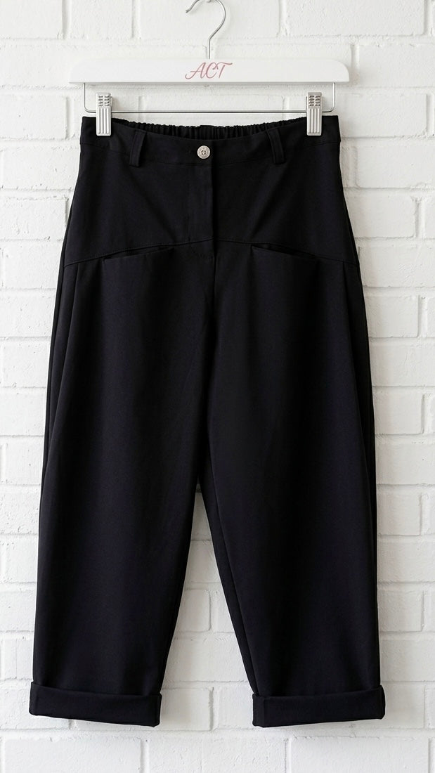 Pantalón con goma en la parte de atrás de la cintura. Con bolsillos por delante tipo ojal y detalle de complemento en la trebilla. Tejido suave y ligero 52 algodón